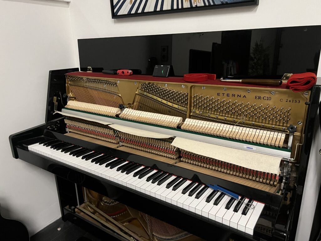 Het is altijd een goed idee om eens in de zoveel tijd de hele piano na te gaan op zoek naar mankementen. Wanneer mogelijk repareer ik de piano ter plekken.